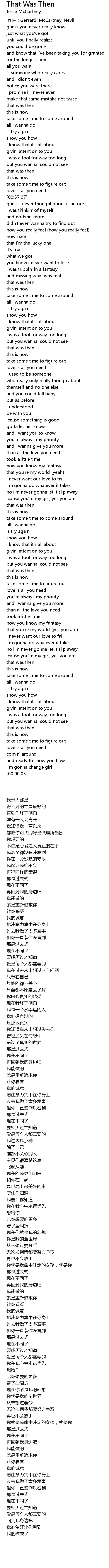 | 歌曲 | That Was Then |