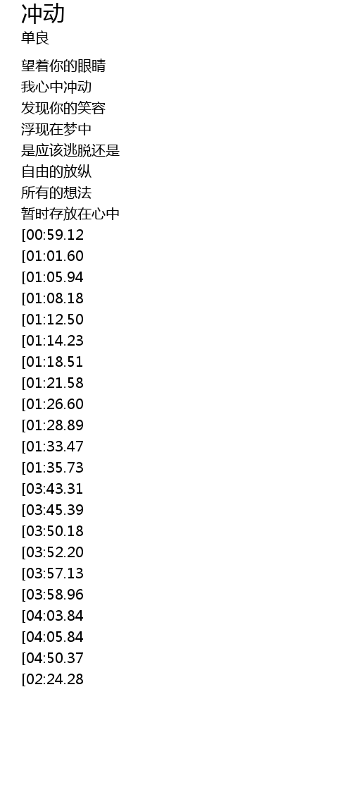 | [04:57.22][04:50.37][04:16.16][04:09.22][02:15.87][02:09.26] | shén me shì chōng dòng |