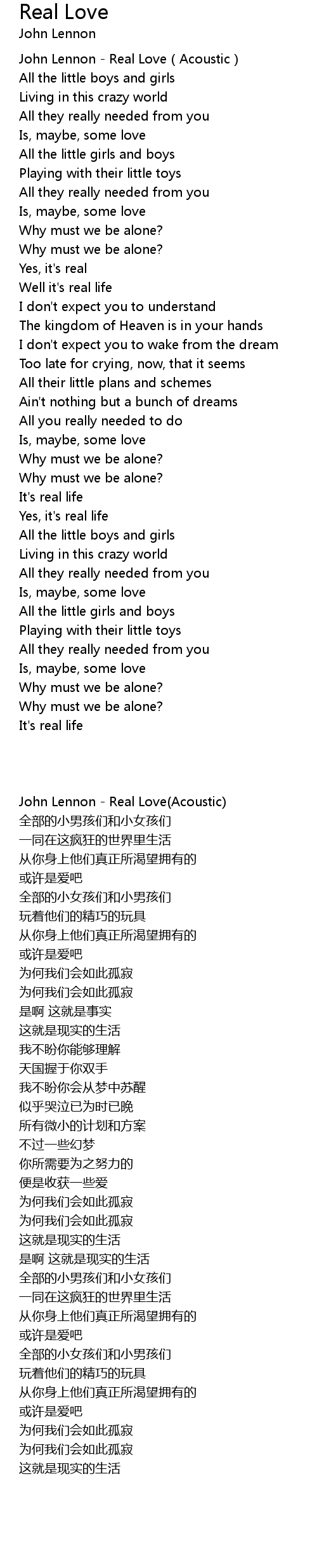 | [00:00.00] | John Lennon - Real Love(Acoustic) |