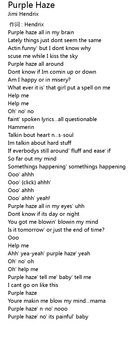 | [02:29.26] | Purple haze' tell me' baby' tell me |