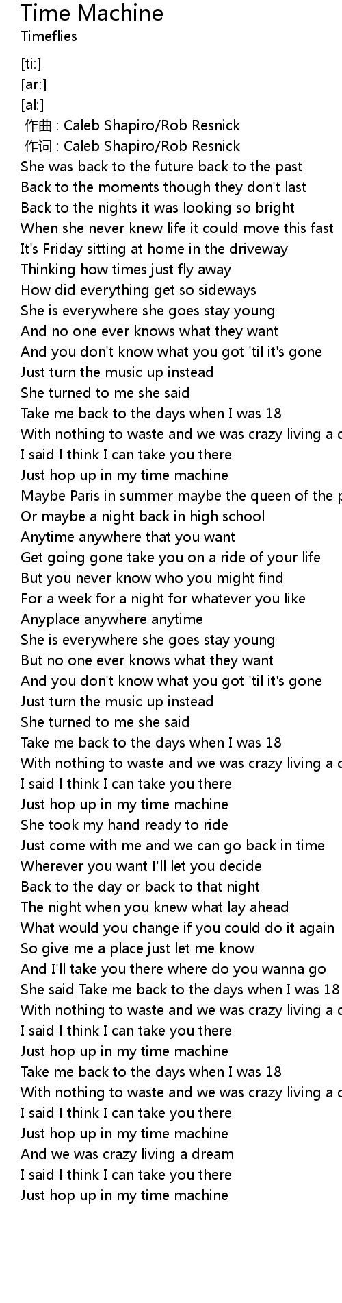 | [00:52.68] | Just hop up in my time machine |