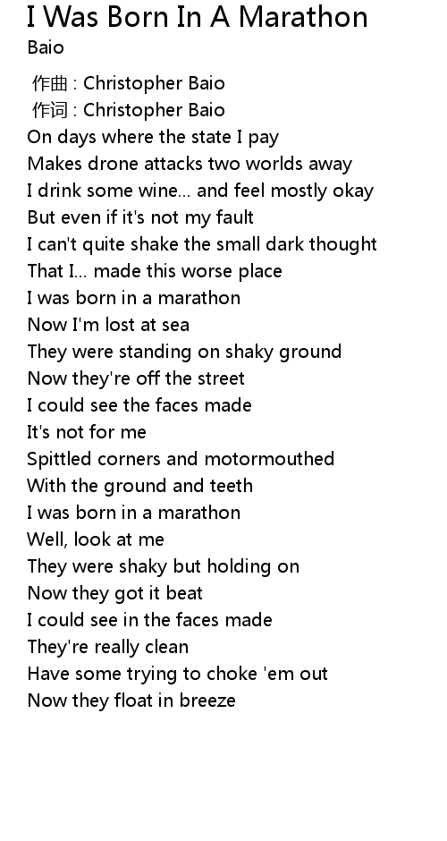| [02:58.46] | I was born in a marathon |