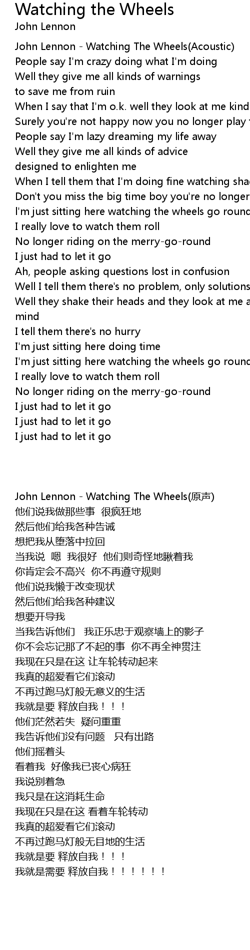 John Lennon - Watching The Wheels(Acoustic) |