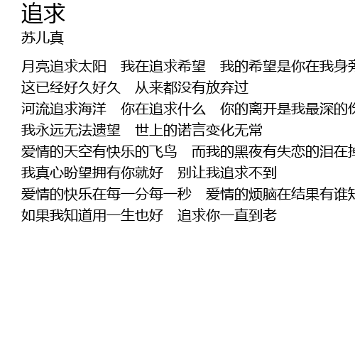 | 月亮追求太阳 我在追求希望 我的希望是你在我身旁 | |