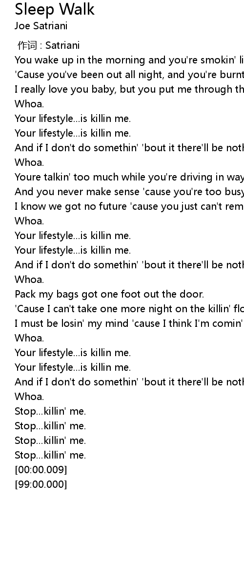 | [00:54.44] | Your lifestyle... is killin me. |