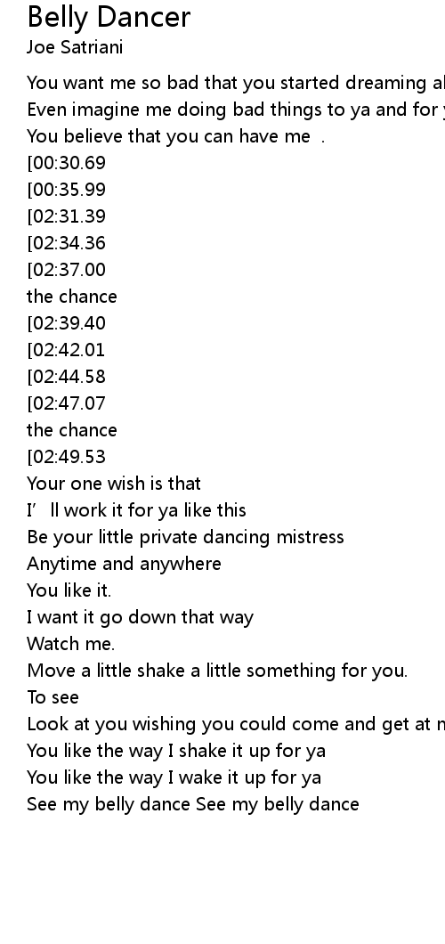 | [03:02.28][02:42.01][01:41.72][00:51.27] | You want to see my belly dance. |