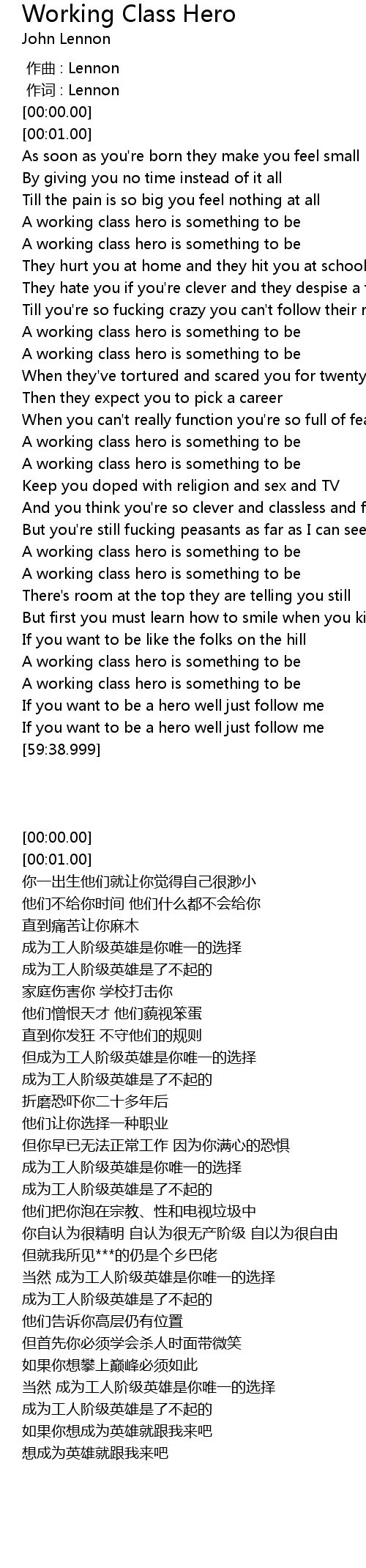 | [00:39.100] | 成为工人阶级英雄是了不起的 |