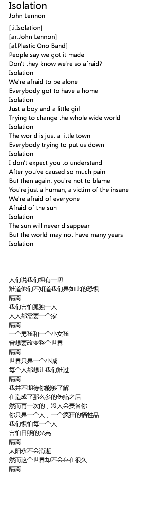 | [ti:Isolation] | |