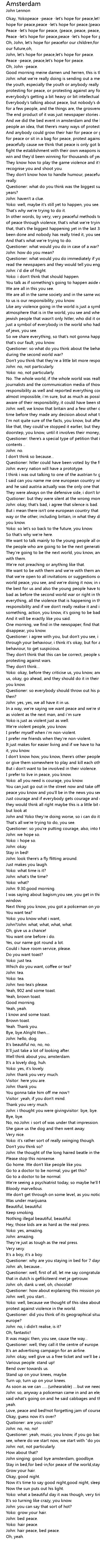 Yoko: well, because we thought of this idea about staying in bed for 7 days for protest against violence in the world. |