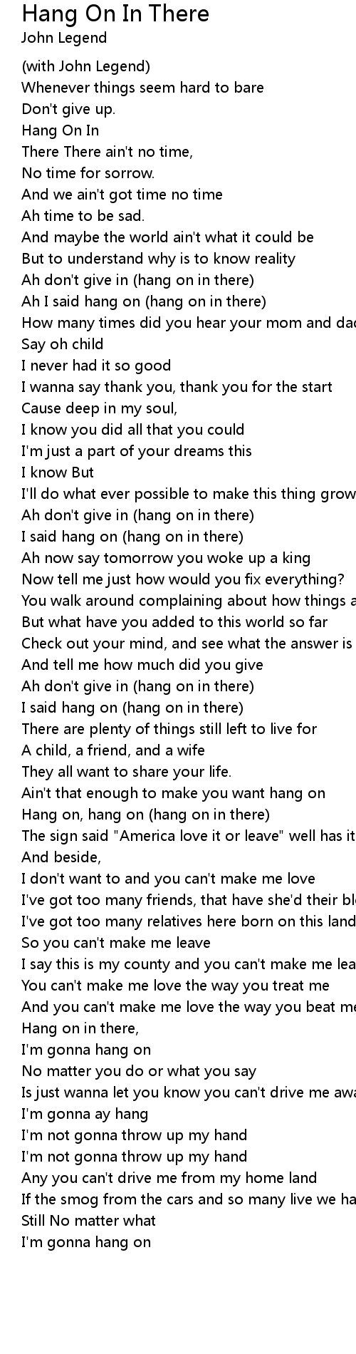 Hang on in there, |