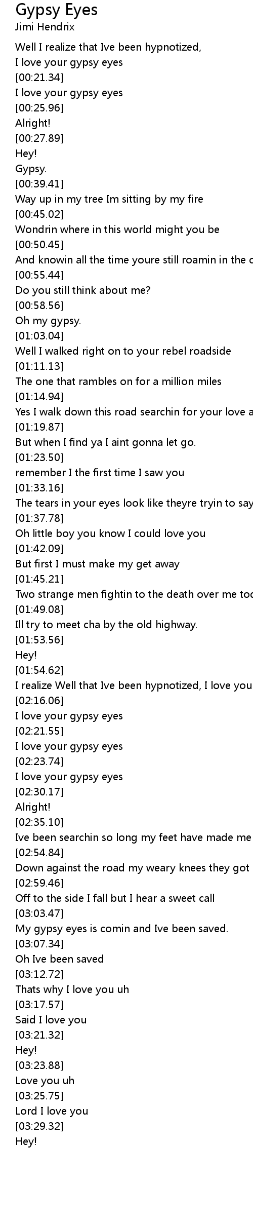 I realize Well that Ive been hypnotized, I love your gypsy eyes |