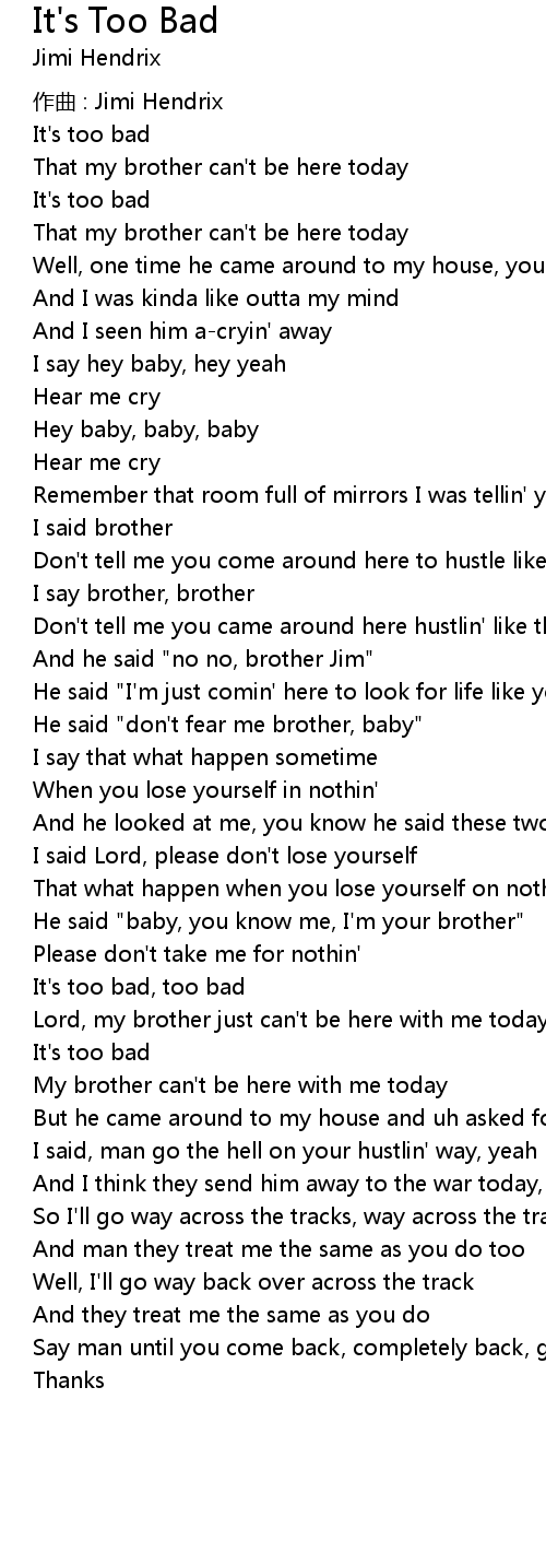 | 歌曲 | It's Too Bad |