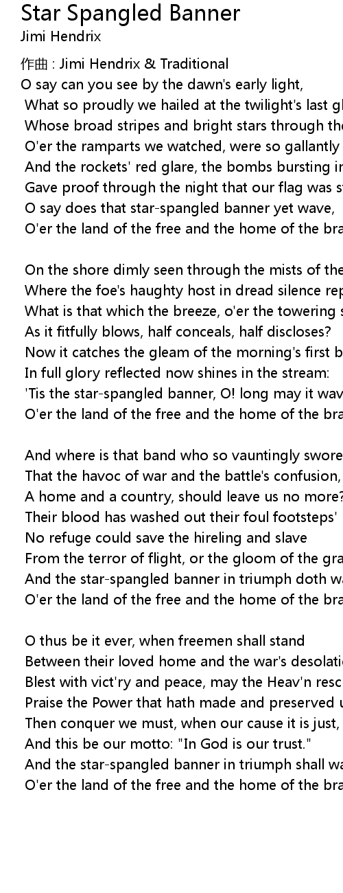 | O say does that starspangled banner yet wave, | |