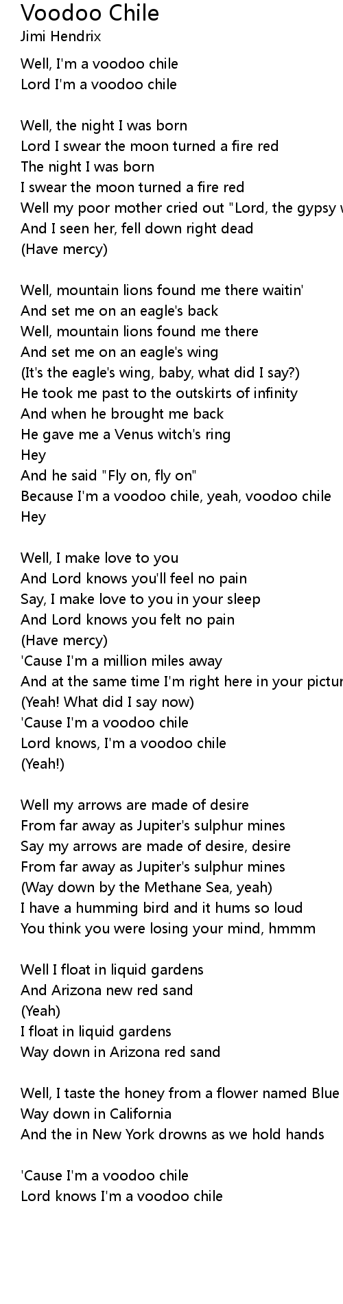 Because I'm a voodoo chile, yeah, voodoo chile