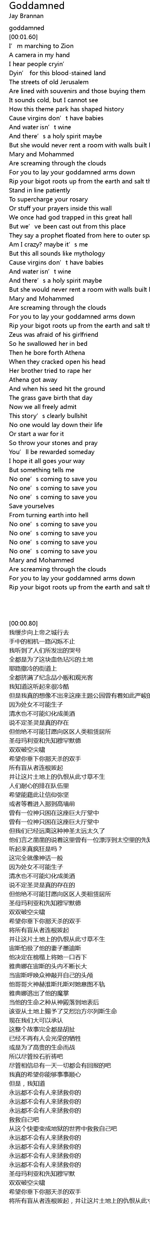 | [00:00.80] | goddamned |