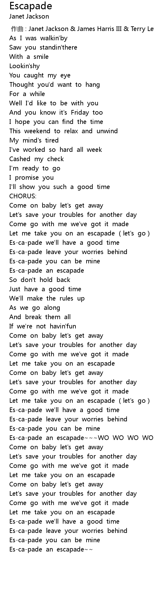 | [02:59.387] | Let me take you on an escapade (let's go) |
