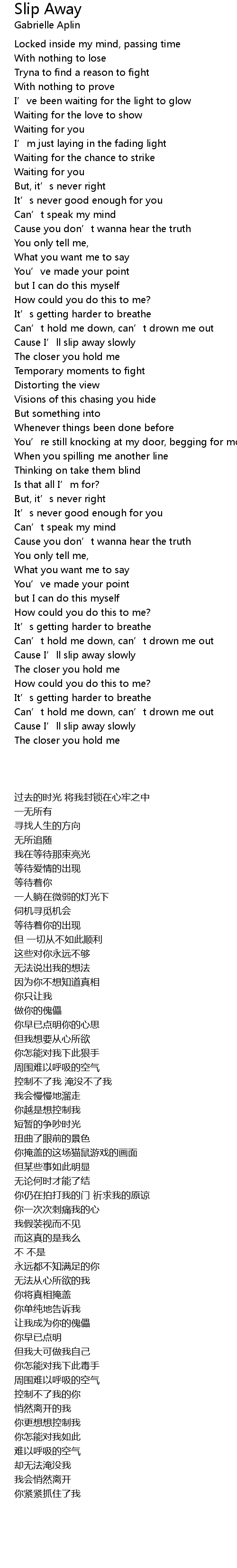 | [01:33.58] | Cause I’ll slip away slowly |