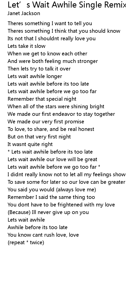 Lets wait awhile |