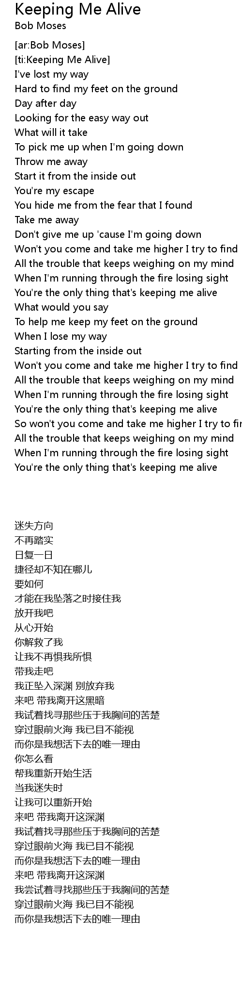 [ti:Keeping Me Alive] |