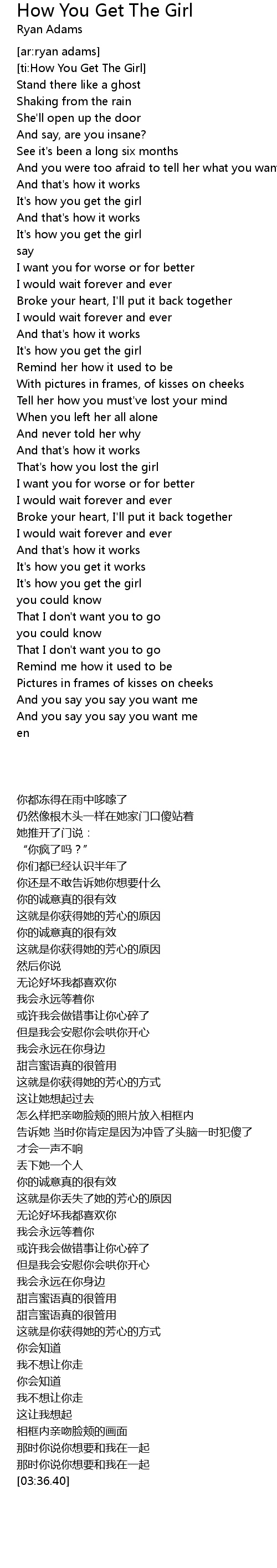 [ti:How You Get The Girl] |