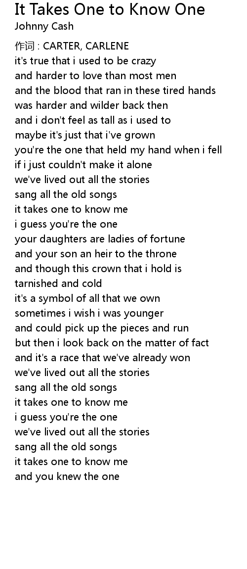 | it takes one to know me | |