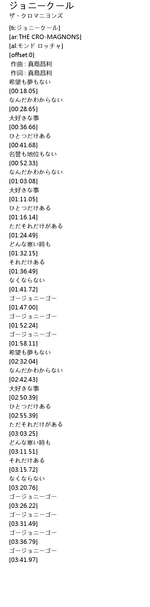 | [ti:ジョニークール] | |