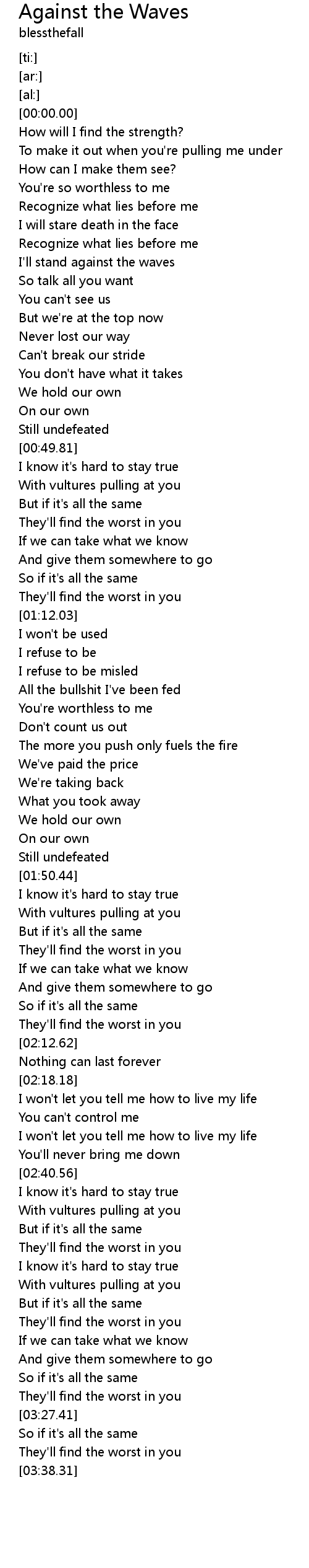 I'll stand against the waves |