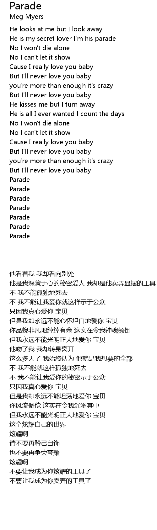 He is my secret lover I'm his parade |