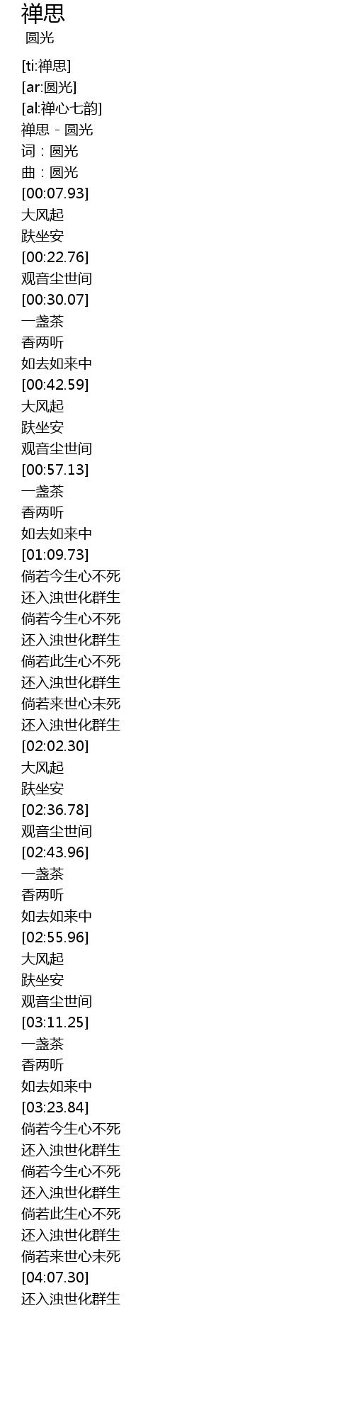 | [00:02.50] | 禅思 - 圆光 |