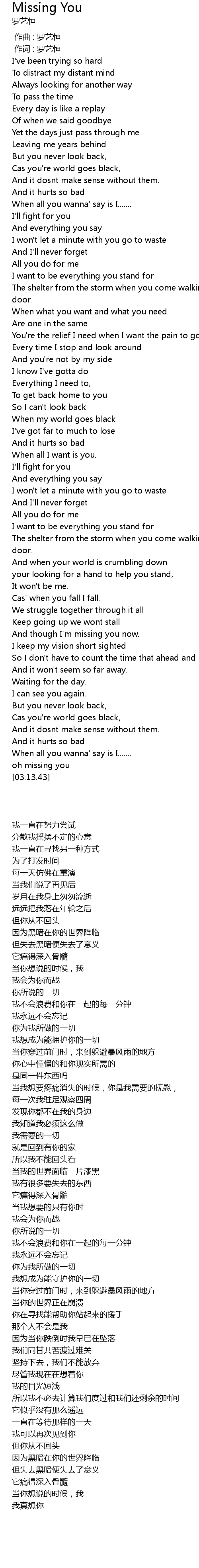 | [02:39.47] | oh missing you |