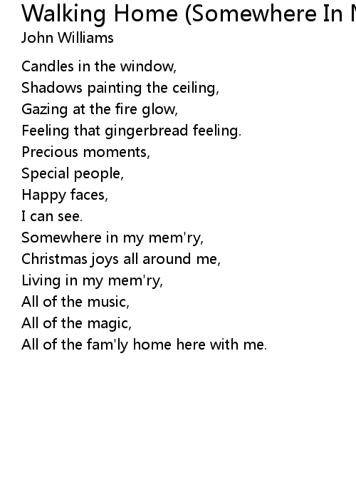 | 歌曲 | Walking Home (Somewhere In My Memory) |