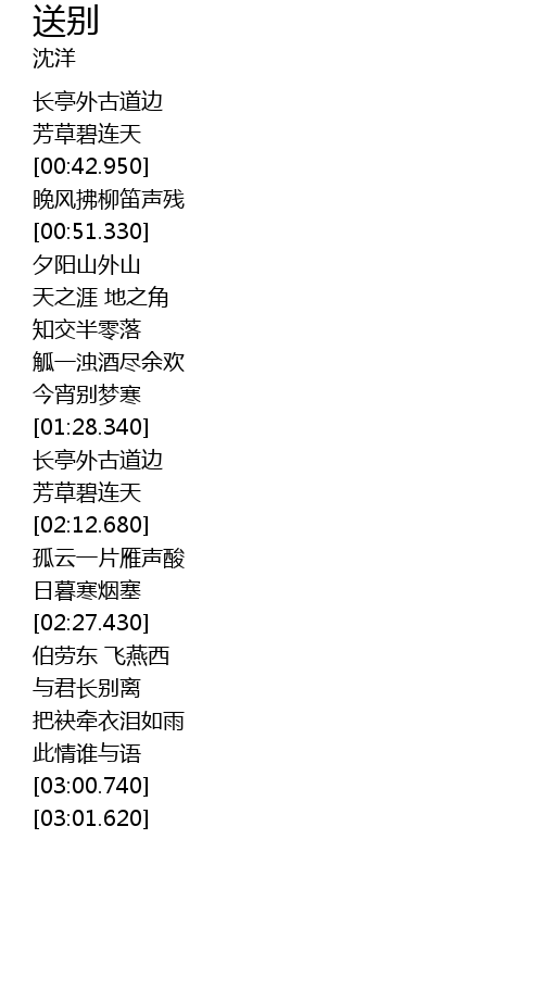 | [01:58.680] | 长亭外古道边 |