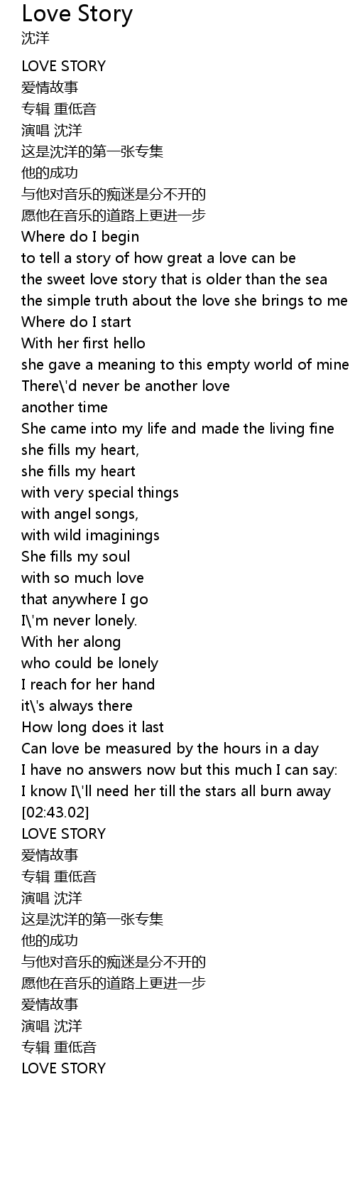 | [03:01.42] | 这是沈洋的第一张专集 |