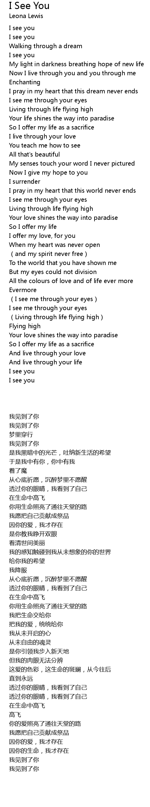 | 歌曲 | I See You |