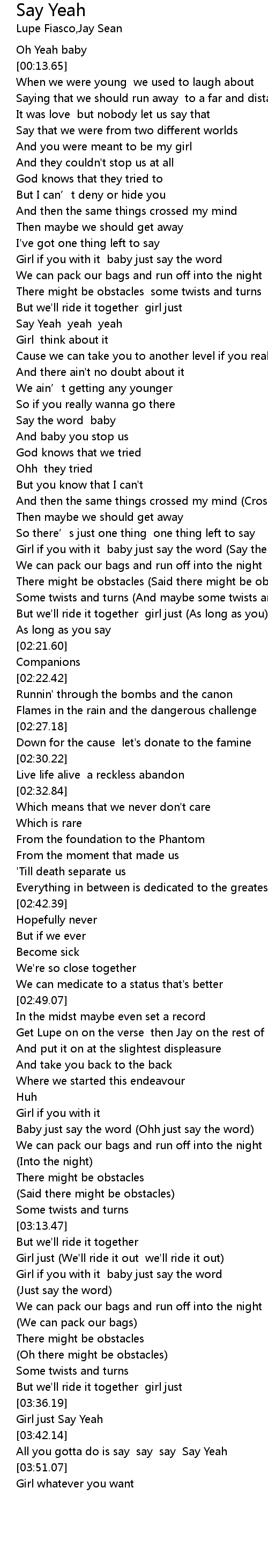 | [03:43.78] | All you gotta do is say say say Say Yeah |