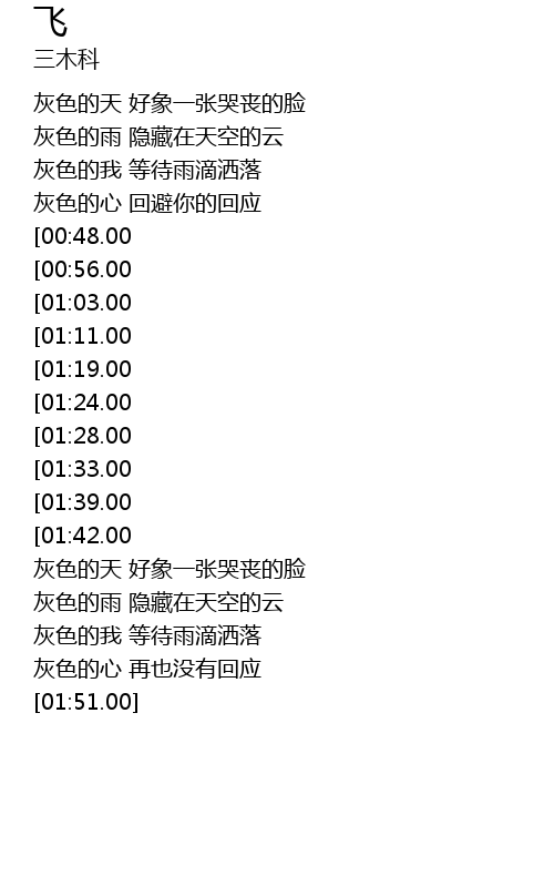 | [03:01.00][01:24.00] | 飞进无人的苍茫里 |