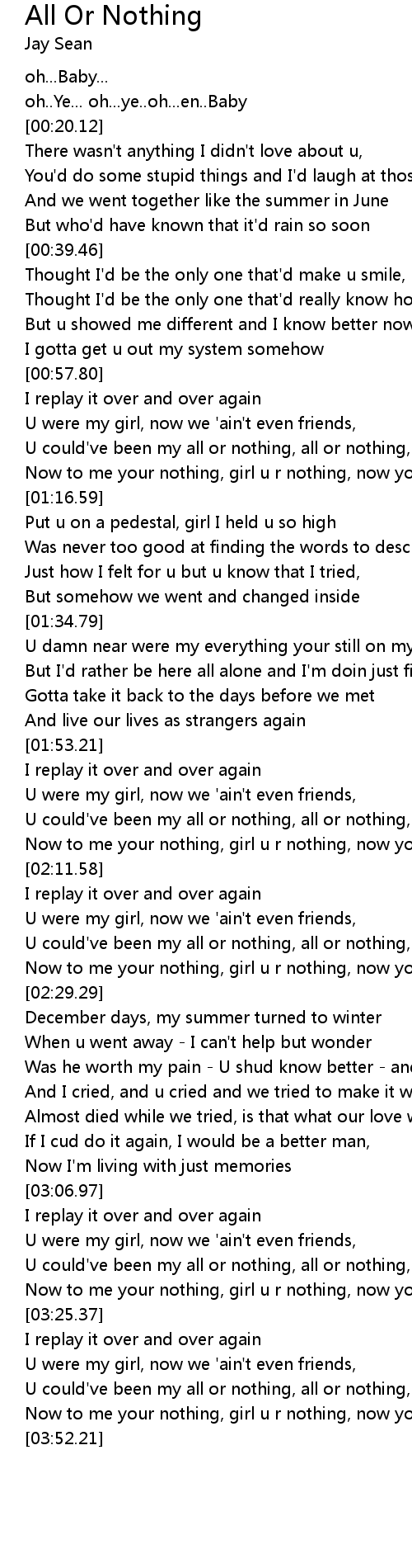 U could've been my all or nothing, all or nothing, |