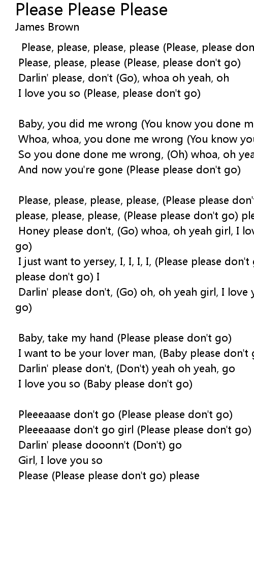 Please, please, please, please, (Please please don't go) please, please, please, please, please, (Please please don't go) please |