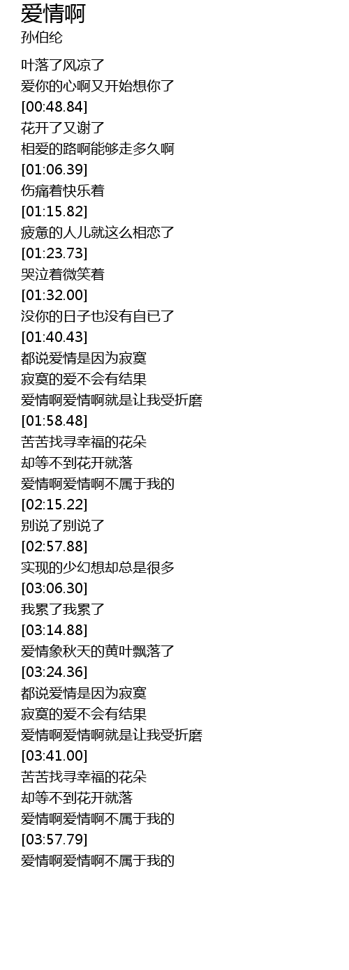 | [03:51.90] | 爱情啊爱情啊不属于我的 |