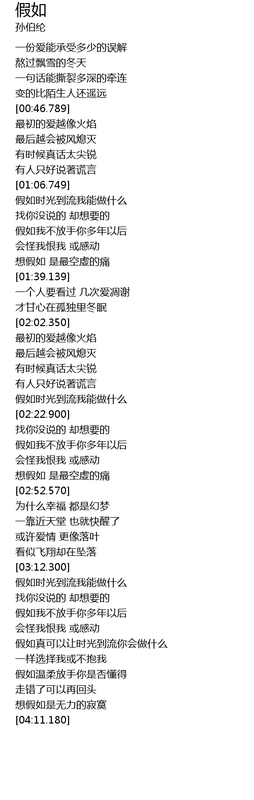 | [04:00.610] | 想假如是无力的寂寞 |