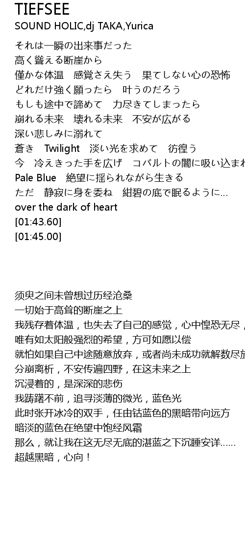 | [00:59.51] | Pale Blue 絶望に揺られながら生きる |