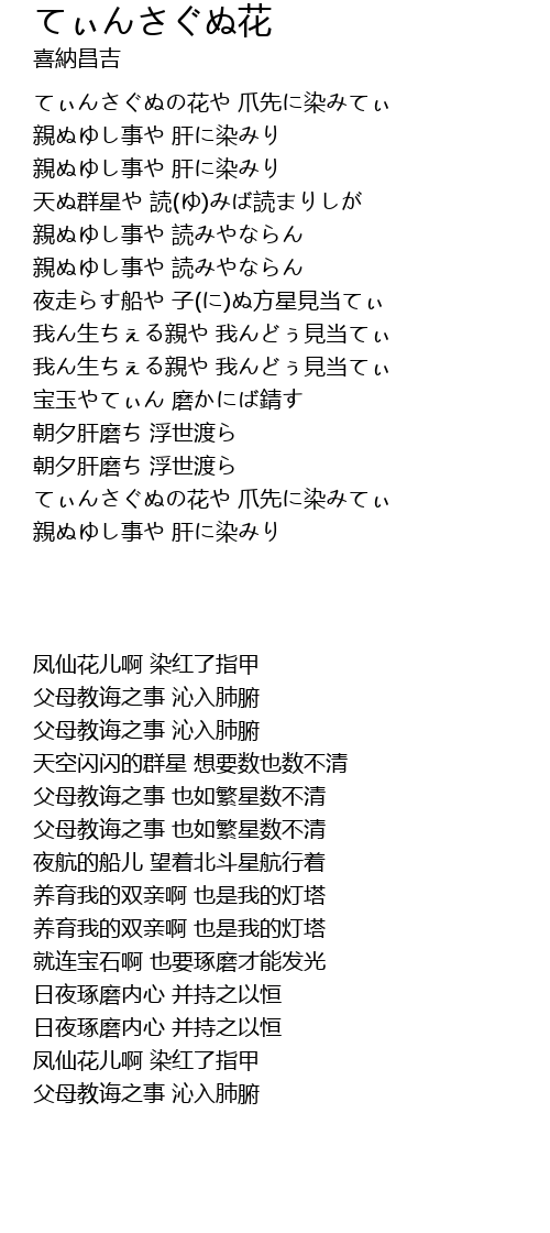 | 歌曲 | てぃんさぐぬ花 |