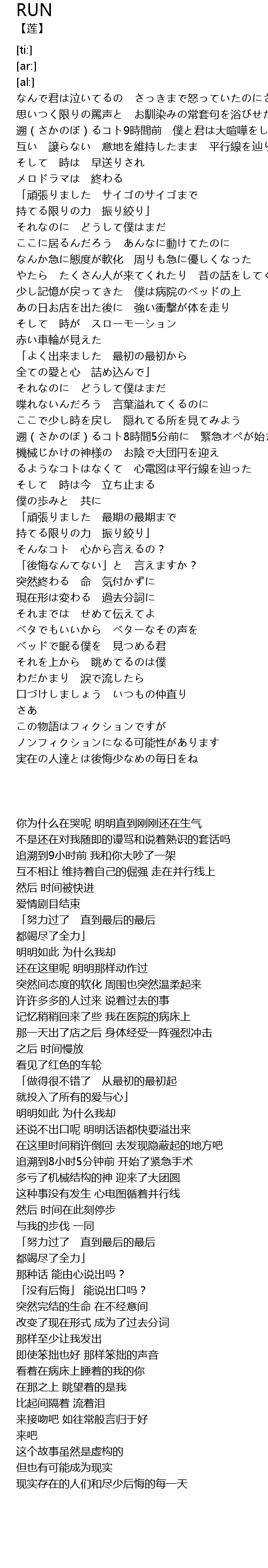 | [02:40.93] | るようなコトはなくて 心電図は平行線を辿った |