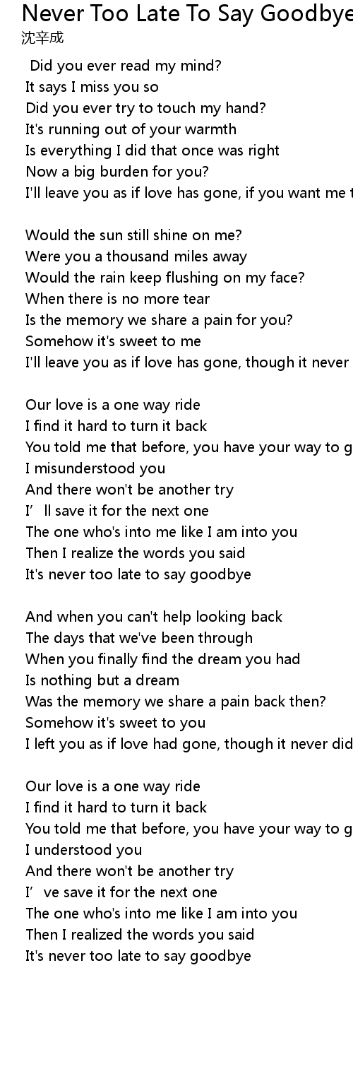 | It' s never too late to say goodbye |