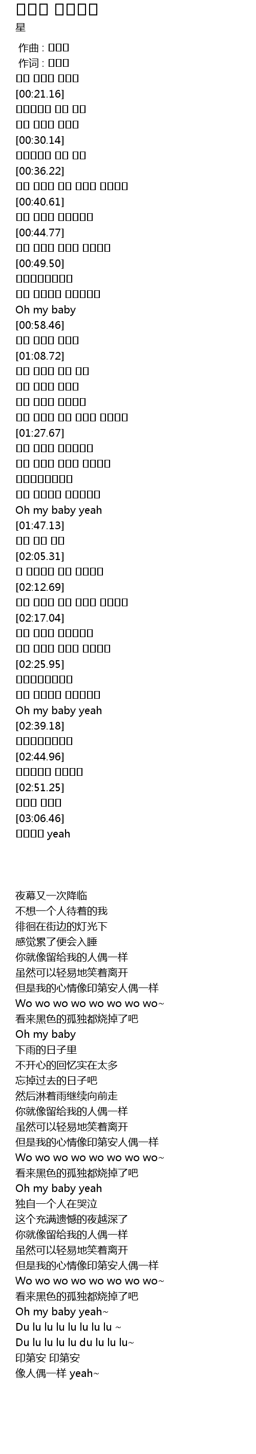 | [01:32.72] | 나의 마음은 인디안 인형처럼 |