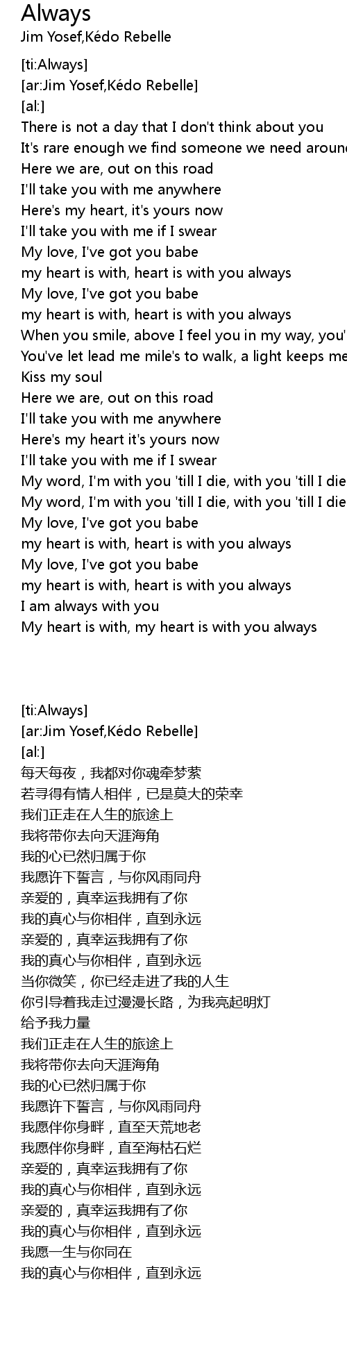 | [03:40.63] | My heart is with, my heart is with you always |