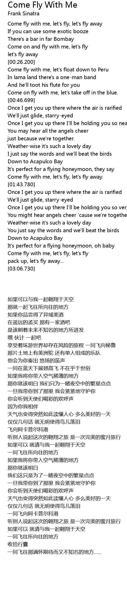 | [01:38.499] | Come fly with me, let's fly, let's fly away. |