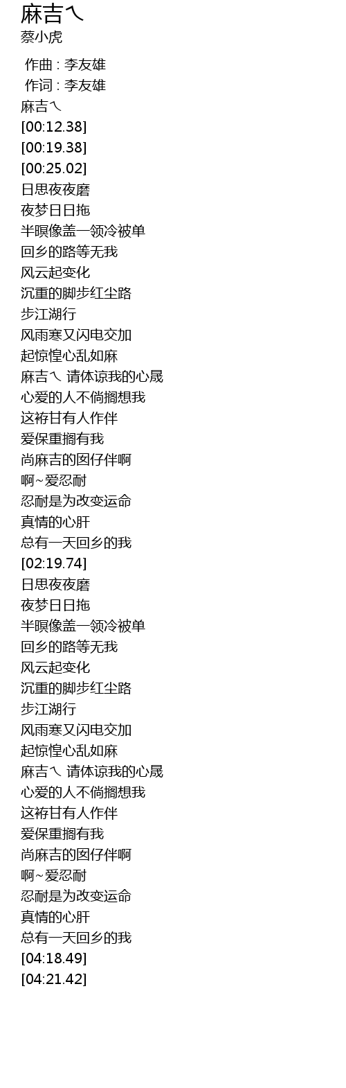 | [02:51.98] | 回乡的路等无我 |