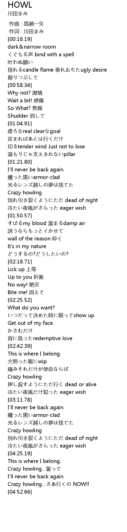 | [04:32.02] | Crazy howling…誓って |