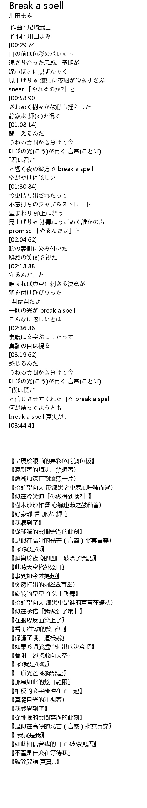 | [01:20.86] | と響く夜の彼方で break a spell |